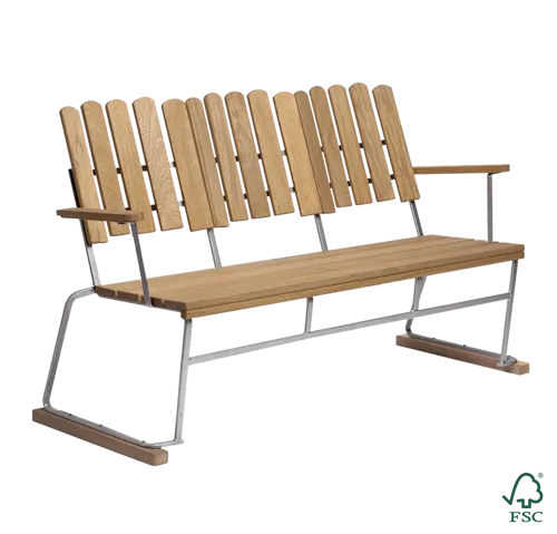 Rammene er laget av solid stål, noe som sikrer maksimal stabilitet og langvarig holdbarhet. Møbler i teak, oljet eik og hvitlakkert eik er tilgjengelige med enten varmgalvanisert eller svart pulverlakkert ramme – to robuste overflater som beskytter mot rust og slitasje. Furuversjonen tilbys eksklusivt med en grønn pulverlakkert ramme – en farge som har blitt synonymt med Klassikerserien og en antydning til dens tidløse tradisjon.