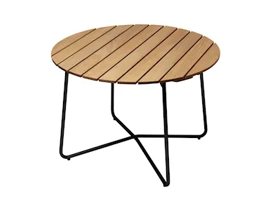 Underredena är tillverkade i massivt stål för maximal stabilitet och livslängd. Möblerna i teak, oljad ek och vitlackerad ek finns med antingen varmförzinkat eller svart pulverlackerat stativ – två hållbara ytbehandlingar som skyddar mot rost och slitage. Furumöblerna finns med grönt, pulverlackerat underrede – en färgsättning exklusiv för just furu, och ett klassiskt kännetecken för serien.