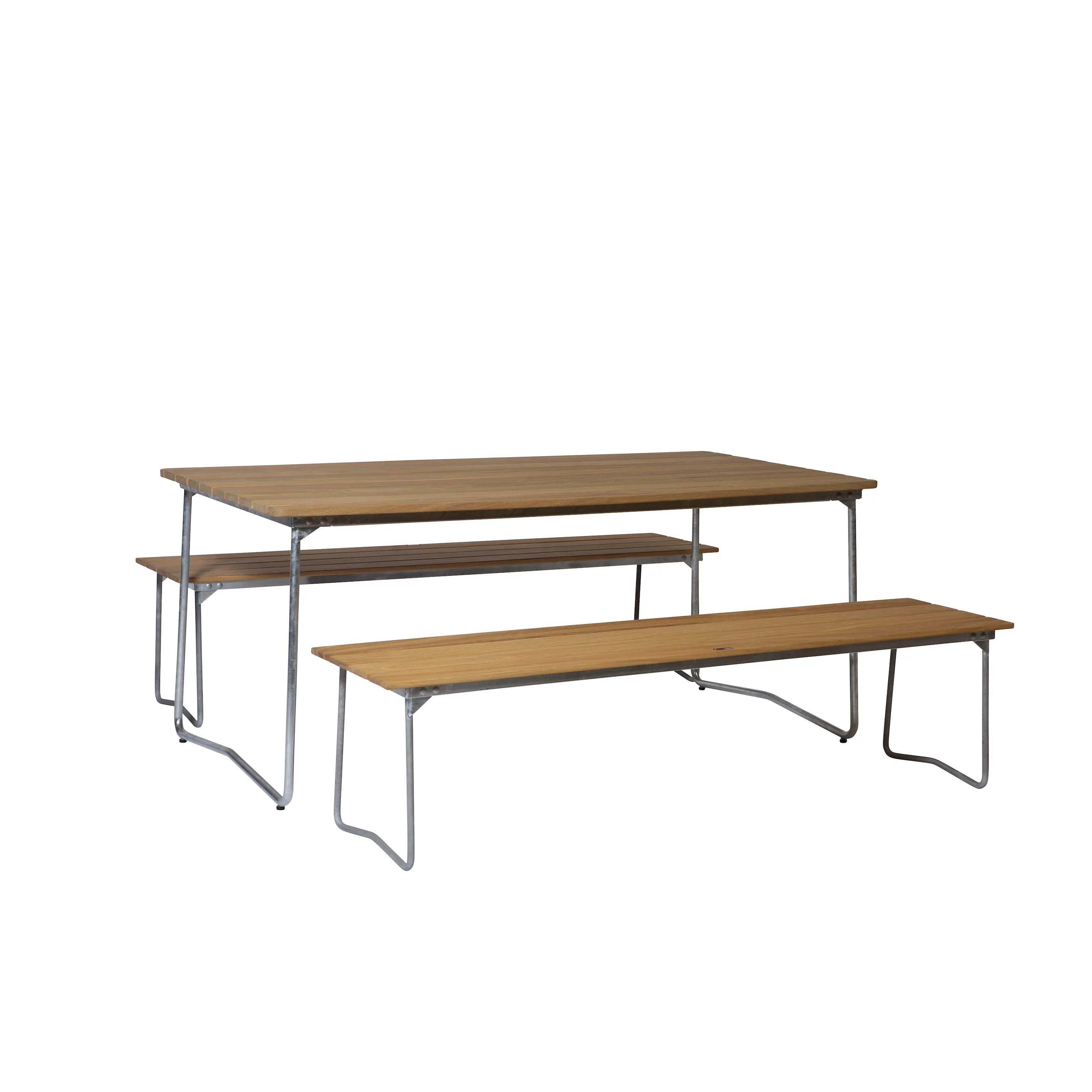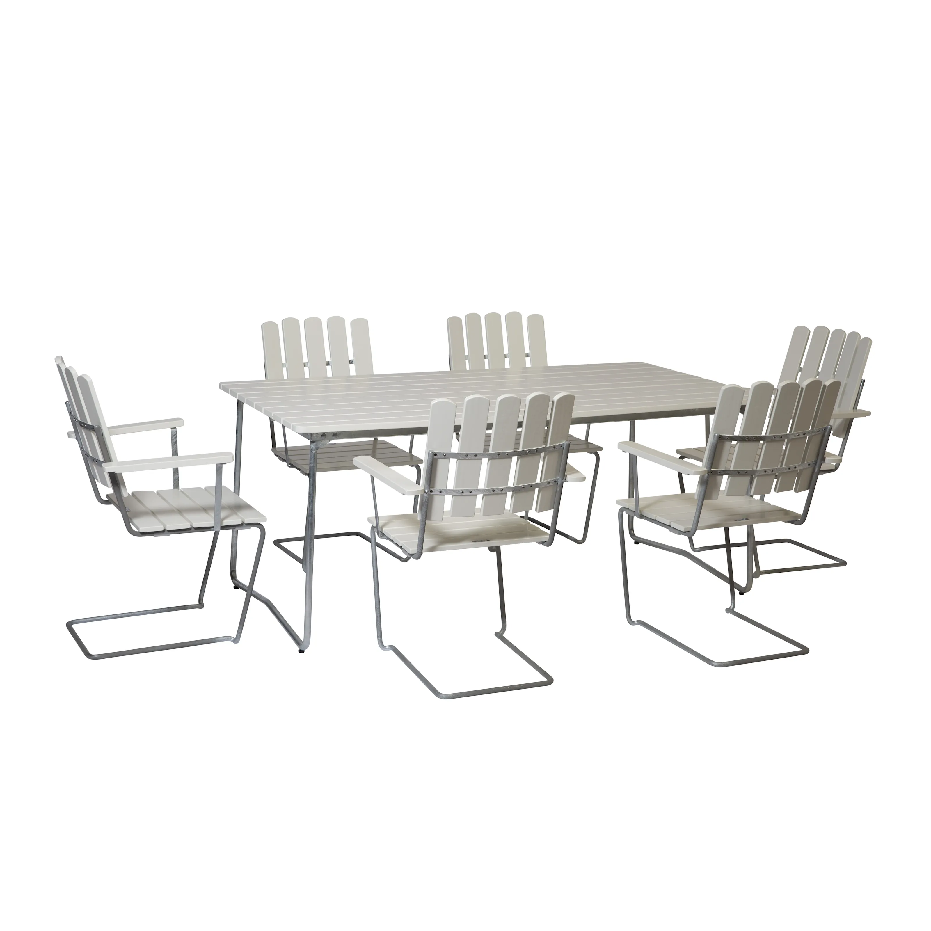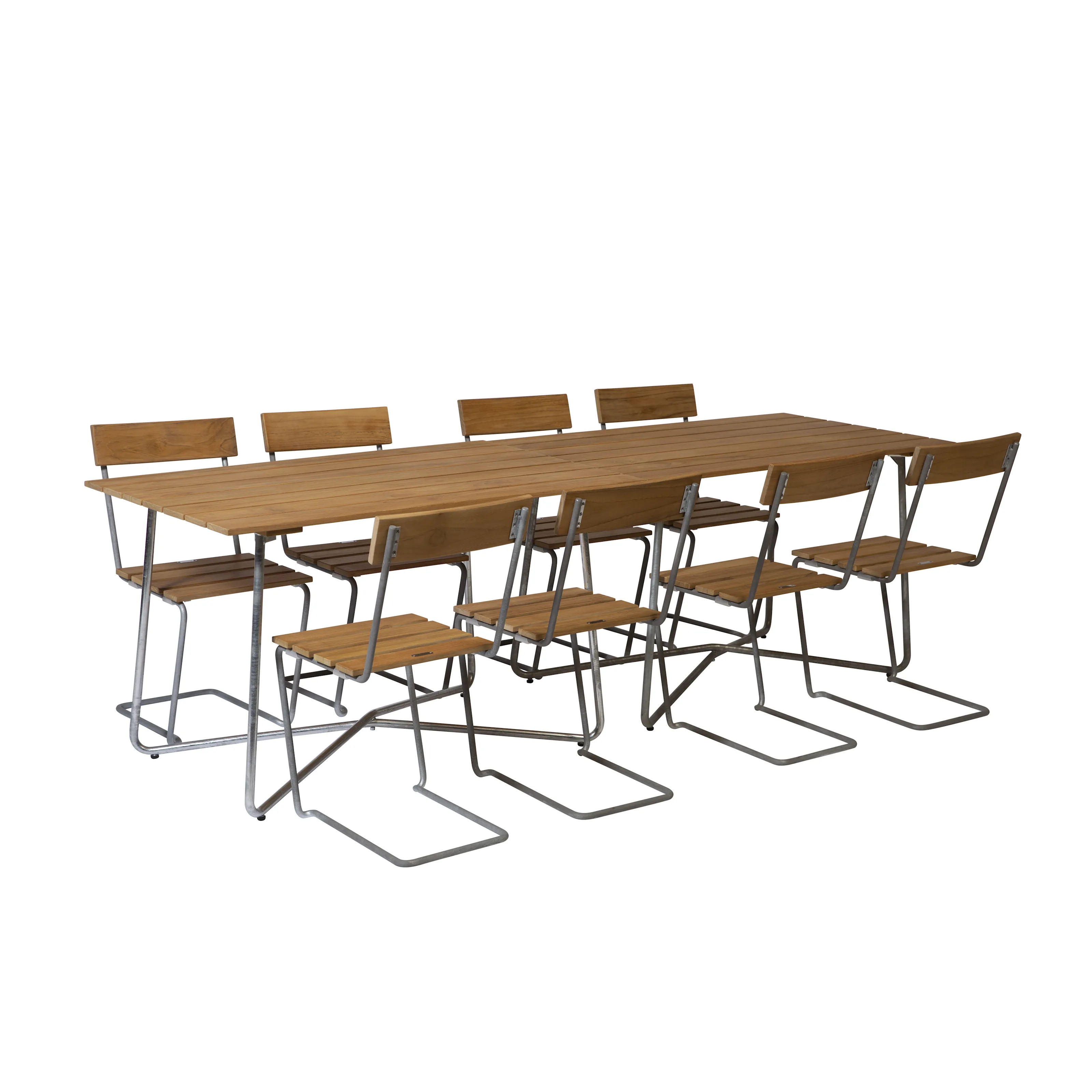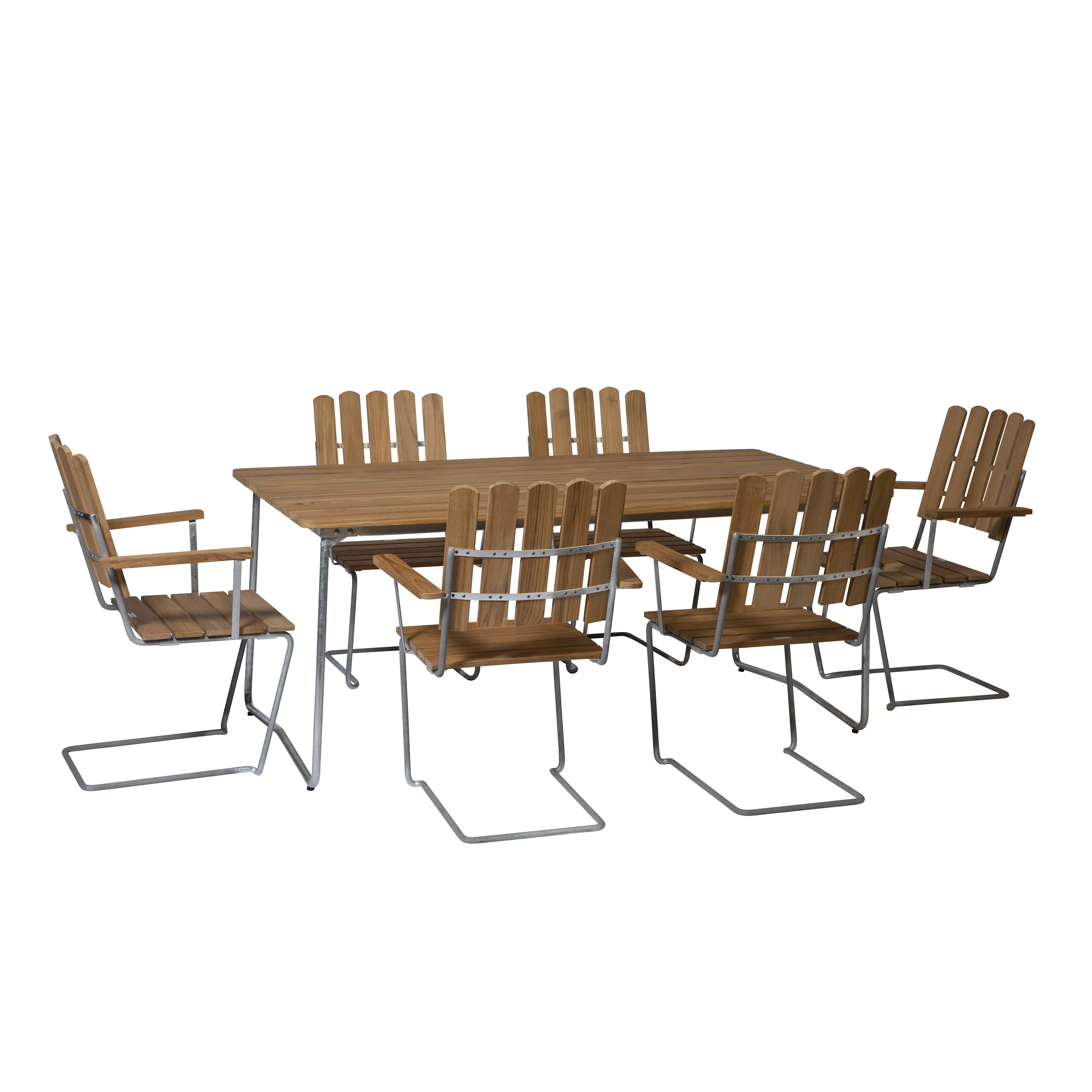 Våra matgrupper för utomhusbruk tillverkas i slitstarka material som är noggrant utvalda för att tåla både tidens tand och det nordiska klimatets skiftningar. Med stativ i varmförzinkat eller pulverlackerat stål och träslag som ek, teak och svensk furu får du utemöbler som inte bara är vackra att se på – utan som också står emot väder, vind och daglig användning. Trädetaljerna utvecklar med tiden en naturlig patina som gör varje matgrupp unik och ännu vackrare år efter år.